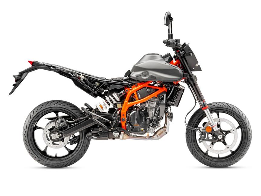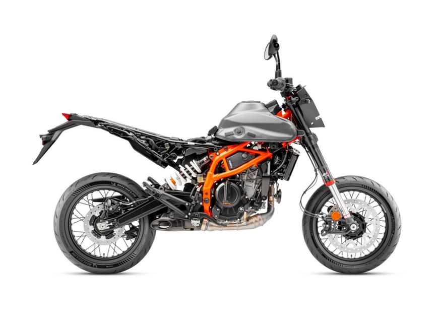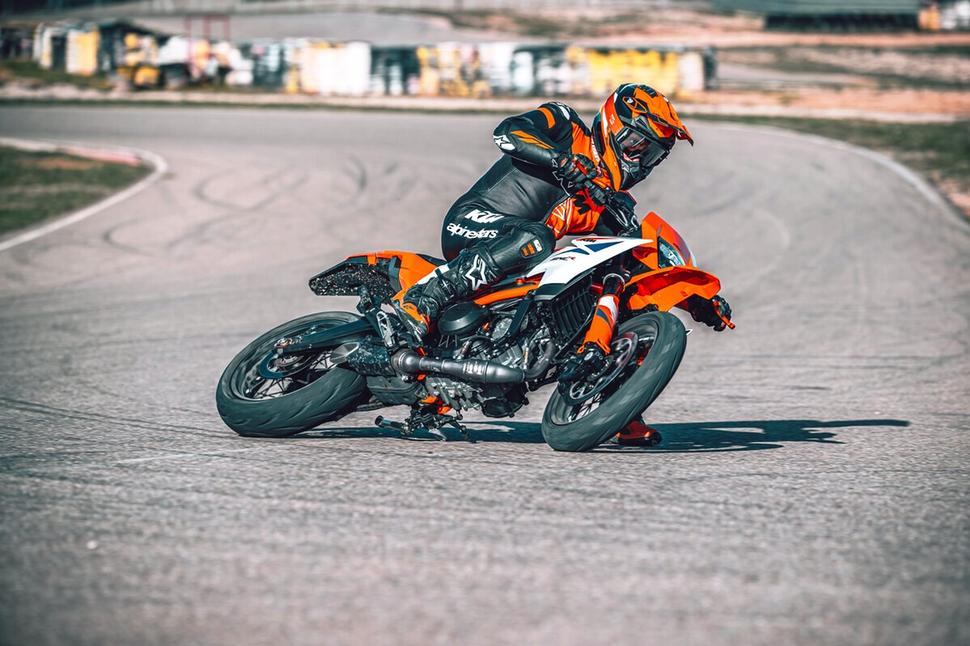 Длинноходные подвески и 17-дюймовые колёса с цепкими шинами дополнены специально подобранным комплектом электронных ассистентов, что делает два младших мотарда удобными в повседневной эксплуатации. Они основаны на проверенных временем и отшлифованных платформах, обладают фирменным агрессивным дизайном с ярко-оранжевой решётчатой рамой, имеют запас регулировок под разный рост и стили езды и снабжены современными технологиями.