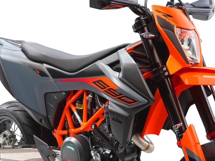 13,5-литровый бензобак KTM 690 SMC R является несущим элементом шасси, делая его жёстче и обеспечивая оптимальную связь райдера с мотоциклом.