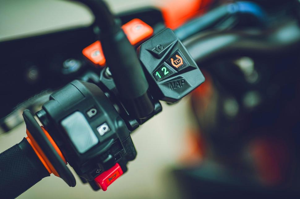 KTM 690 SMC R оснащён двумя режимами езды, №1 - Дорожный, и №2 - Супермото. Дорожный режим обуславливает спортивный отклик двигателя на газ, а проскальзывание колеса и вилли снижены до минимума, обеспечивая оптимальный характер для дорожной езды. ABS здесь работает в двухканальном режиме, то есть как на переднем, так и на заднем колесе. Режим Супермото напротив обеспечивает более плавный отклик, при этом трекшн-контроль работает в режиме Супермото, позволяя проскальзывание заднего и подъём переднего колеса в допустимых пределах и не влияя на производительность двигателя. Режимы с лёгкостью переключаются с руля, позволяя на ходу менять характер двигателя. Трекшн-контроль при необходимости отключается, а в режиме Супермото автоматически отключается задний канал ABS для лучшего чувства заднего тормоза и для слайдов в стиле Супермото.