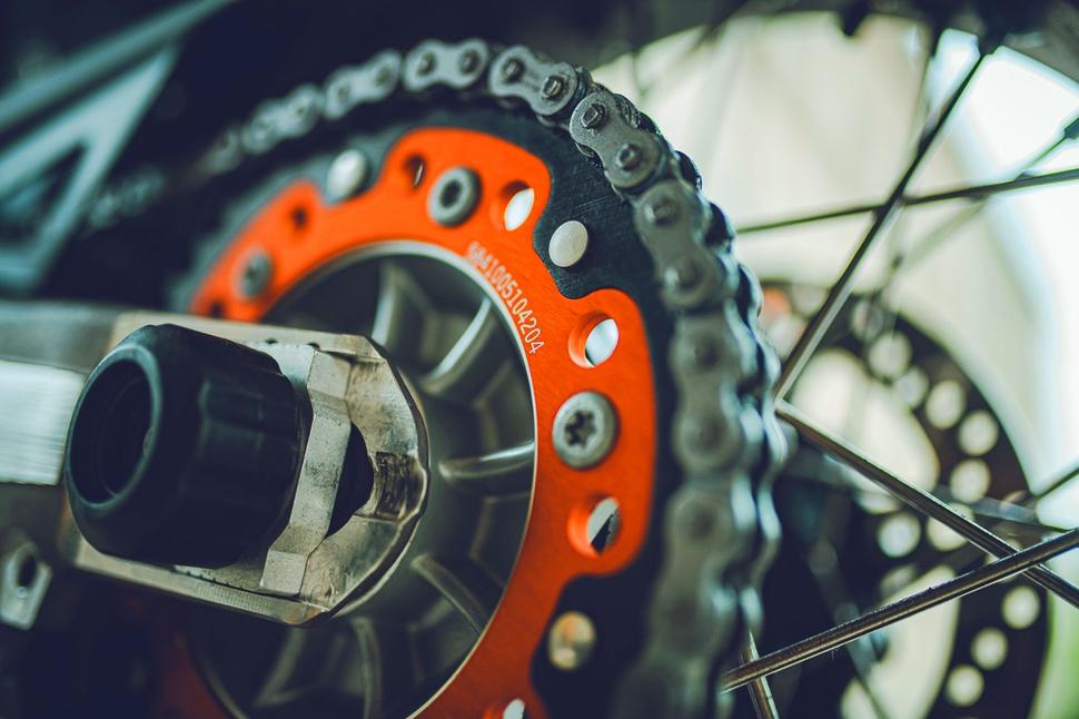 Амортизатор WP XPLOR, специально настроенный для супермото, установлен на маятник через рычаг. Это обеспечивает прогрессивный характер подвески и высокую её устойчивость к пробою. Наличие полного набора регулировок, включая быстрое и медленное сжатие, позволяет настроить задний амортизатор под любые условия и предпочтения райдера.