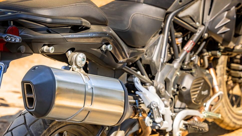 В отличие от игрушечной рядной четвёрки TnT600, 500-кубовая рядная двойка TRK 502 X с двумя верхними распредвалами, восемью клапанами и жидкостным охлаждением обеспечивает приличную тягу. На диностенде этот мотоцикл выдал честные 38,5лс с колеса. Это немного, и кажется, что с такой мощностью невозможно за вменяемое время разогнаться до 160 и больше км/ч, но спидометр показывает именно это, и он врёт не больше, чем любой другой.
