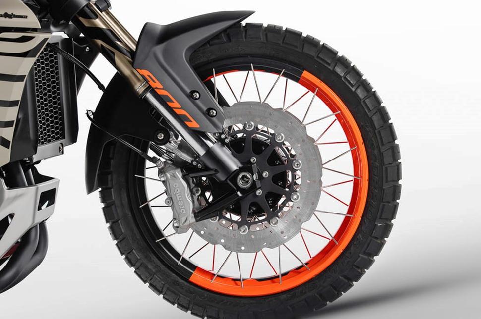 Тормозная система от Brembo включает два 320-х полуплавающих диска спереди и четырёхпоршневые суппорта на них, а также 260-миллиметровый диск сзади с однопоршневым суппортом. Спицованные колёса с алюминиевыми ободами обуты в резину 110/80-19 спереди и 150/70-17 сзади.