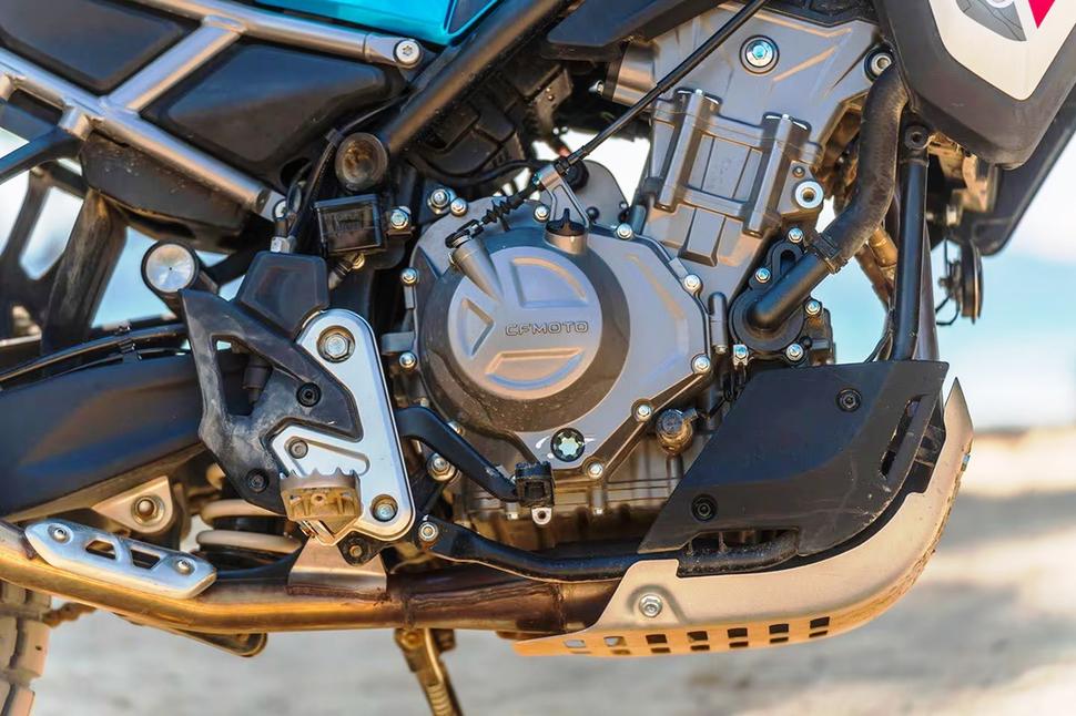 В основе Ibex 450 - 449-кубовая рядная двойка с 270-градусным коленвалом, модифицированная версия мотора CFMoto 450NK и 450SS со специально разработанным распредвалом, аирбоксом и выхлопом для повышения тяги на средних оборотах. В составе CFMoto Ibex 450 этот двигатель выдаёт 44лс на 8500об/мин и столько же ньютон-метров на 6250об/мин, при этом кривая момента более острая и пиковая по сравнению с более ровной полкой на NK.