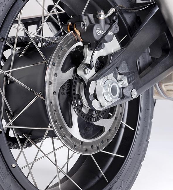 Восьмидисковое сцепление имеет гидравлический привод, копирный вал установлен на подшипниках, снижающих трение и дающих более точное и мягкое переключение. Для тех, кто любит агрессивные переключения без выжима сцепления, DesertX штатно оснащён квикшифтером, работающим в обе стороны.