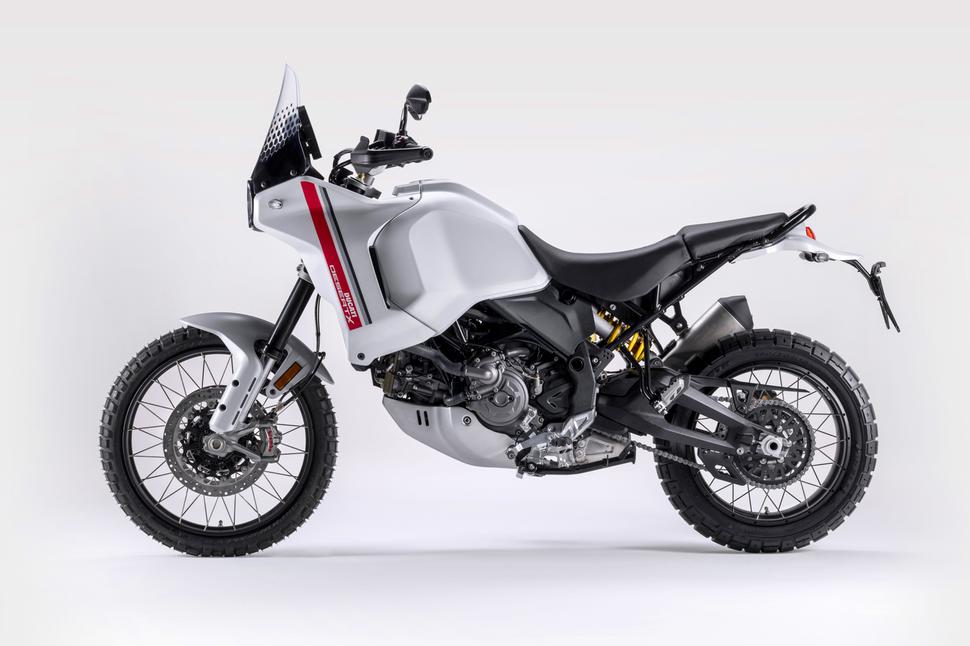 При всём уважении к семейству Multistrada, нынешние турэндуро от Ducati больше заточены под асфальт с периодическим съездом на приличного качества грунтовки. И в этом нет ничего плохого, если учитывать, что Multistrada запросто уделывают на асфальте многие спортивно-туристические модели. Однако, если вы присматриваете себе именно Ducati, но хотите более внедорожный вариант, чем Multi - имеет смысл обдумать Ducati DesertX 2022. С его длинноходными подвесками, 21-м передним колесом и большим баком (плюс опциональным вторым баком!) DesertX на сегодняшний день - самый "грязный" Ducati, придуманный и продуманный для внедорожных приключений.