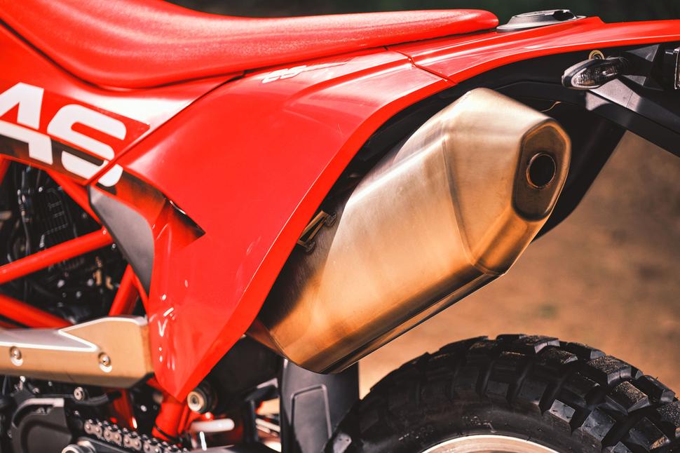 Одноцилиндровый одновальный большекубатурный двигатель GasGas ES 700 является самым мощным в своём классе - он выдаёт 74лс на 8000об/мин и 73,5Нм на 6500об/мин и имеет рабочий объём 692,7куб.см. Компактная головка цилиндра с четырьмя клапанами и двумя свечами зажигания обеспечивает плавную работу мотора и эффективное сжигание топлива, а значит - экологичность. 42-миллиметровые впускные клапана приводятся от распредвала через миниатюрные раздельные толкатели, а 34-миллиметровые выпускные - через коромысло, что обеспечивает более точную фазировку клапанов на высоких скоростях вращения. Двигатель оснащён проскальзывающим сцеплением PASC, лёгкой шестиступенчатой коробкой передач и нержавеющим выхлопом, соответствующим требованиям Euro 5 по громкости и чистоте выхлопа, и при этом обеспечивающим максимальную эффективность работы.