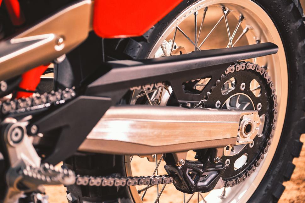 Суперпрочный и красивый литой маятник без единого сварного шва, как и на всех мотоциклах GasGas, изготовлен из цельного куска алюминия и весит лишь 3,9кг. Он обладает идеальной гибкостью, обеспечивая прекрасную управляемость и уверенный зацеп.