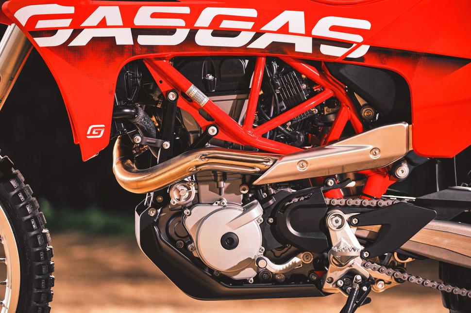 Мотор весит 43,4кг вместе с электростартером, дроссельным узлом, сцеплением и шлангами системы охлаждения. Кроме того, двигатель GasGas ES 700 имеет длинные межсервисные интервалы - 10000км - и весьма эффективно расходует топливо. Высоконагруженные компоненты мотора - коленвал, шатун и поршень - обеспечивают надёжную работу мотора благодаря тщательно продуманной конструкции: коленвал опирается на роликовый подшипник, балансирный вал снижает инерцию и вибрации, а шатун на вкладышах, силуминовый поршень и поршневой палец с алмазоподобным покрытием имеют высокую прочность и долговечность.