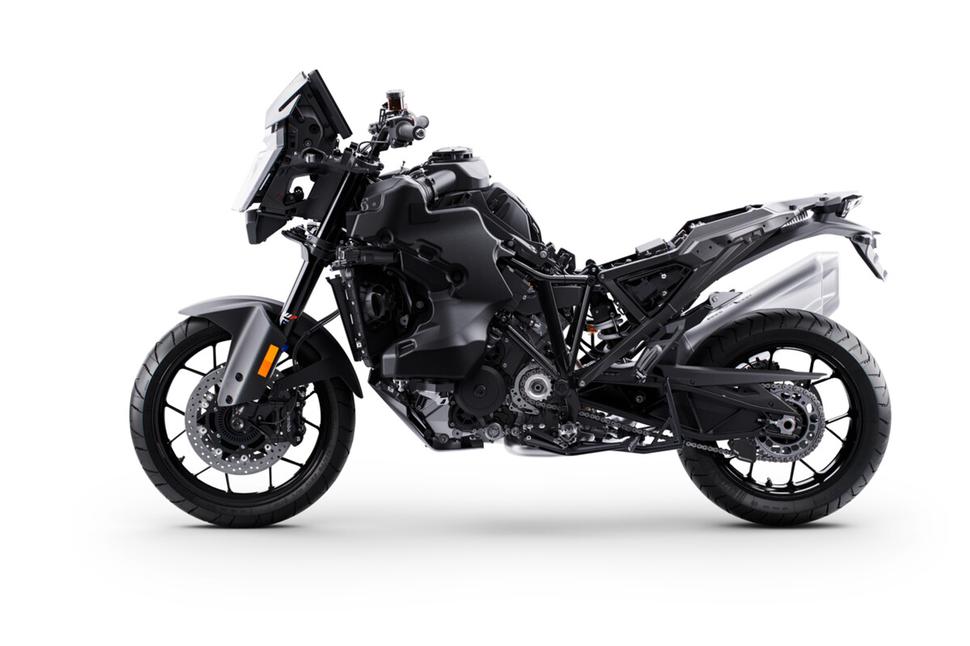 KTM 1390 SUPER ADVENTURE S EVO может похвастаться увеличением кубатуры с 1300 до 1350куб.см, благодаря чему выдаёт 173лс на 9500об/мин и 145Нм на 8000об/мин. Это стало возможным благодаря обновлённым компонентам мотора и новой технологии переменной фазировки ГРМ под названием CAMSHIFT. Эта система обеспечивает высокую тяговитость и управляемость на низах, более высокую пиковую производительность, а также снижение уровня выбросов и расхода топлива. На высоких оборотах впускные кулачки сдвигаются вбок, обеспечивая более длительное открытие клапанов и более высокий подъём клапанов, что позволяет эффективнее заполнить цилиндры смесью. На низких оборотах кулачки уменьшают длительность открытия и высоту подъёма впускных клапанов, оптимизируя тягу. В результате достигается мощный прирост производительности и эффективности, независимо от того, едете ли вы по городским улицам или по скоростным дорогам.