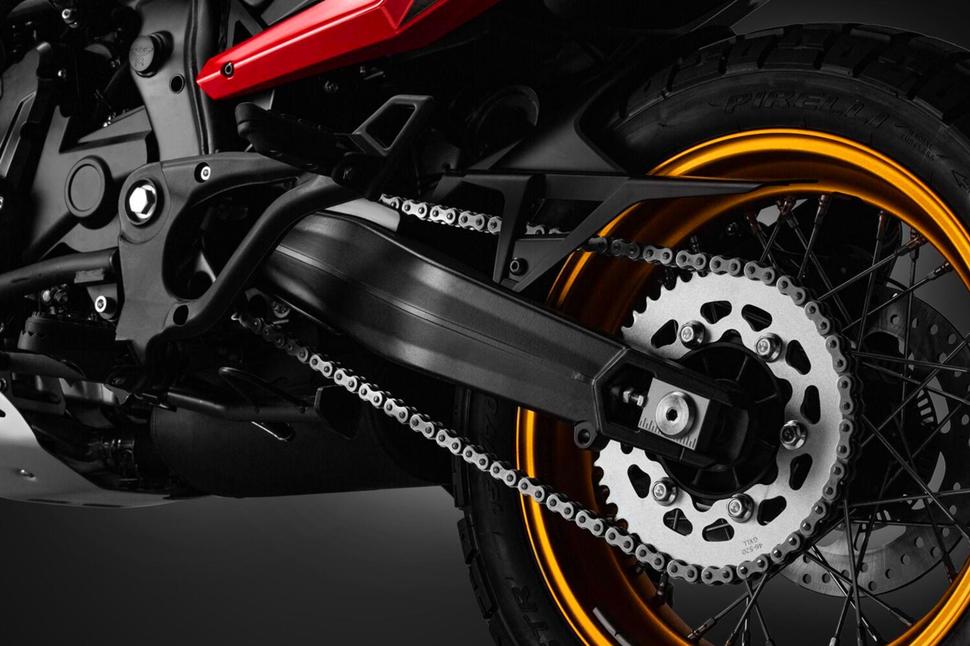 Спецверсия на золотых ободах войдёт в линейку наряду с другими вариантами комплектации X-Cape - на литых чёрных дисках или спицованных чёрных колёсах. При этом оснащение и функционал новой спецверсии остались без изменений: 649-кубовая восьмиклапанная рядная двойка выдаёт 60лс на 8250об/мин и 57Нм на 7000об/мин, а заявленная максимальная скорость мотоцикла составляет 174км/ч. Прежними остались и инжекторная система питания от Bosch, стальная решётчатая рама, регулируемая вилка Marzocchi и тормоза Brembo.