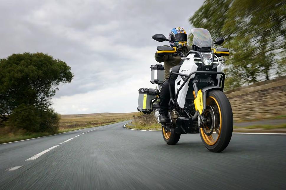 А если учитывать ещё и цену, то получается вообще интересно. Новый турэндуро QJMotor SVT650 X на V-твине выходит на рынок как прямой конкурент Suzuki V-Strom 650 и V-Strom 650XT. Он тоже существует в двух конфигурациях: базовая модель на литых алюминиевых колёсах и вот такая, со спицованными колёсами и более высокими характеристиками, которая называется 650 X. В Британии они стоят 5699 и 5999 фунтов соответственно, а цены для США пока не объявлены. Но если перевести британские цены в доллары и не учитывать всевозможные пошлины и тарифы, то цены составят 7430 и 7873 доллара соответственно, что явно ниже цен на V-Strom 650 (9299 долларов) и V-Strom 650XT (9799 долларов).