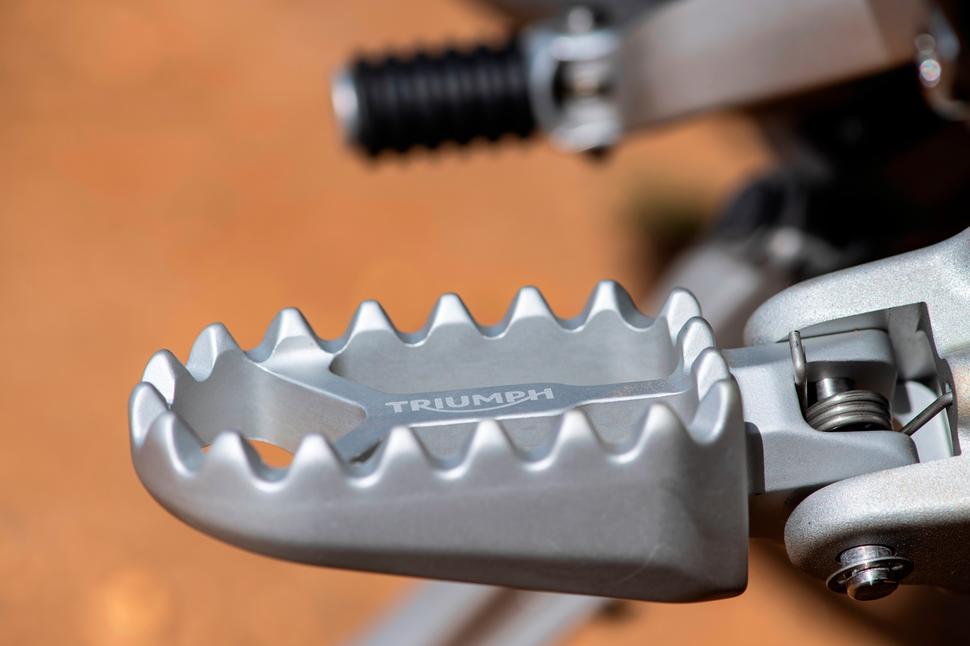 Для первого внедорожного выезда слегка провернули вперёд руль, сняли пассажирские подножки с подрамника и переобули в универсальные шины, в остальном же Triumph остался в заводской форме.