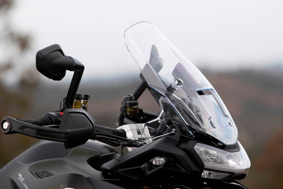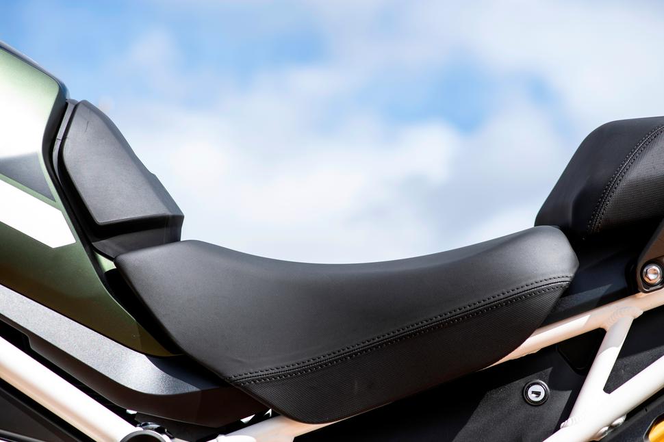 По данным Triumph, новая тройка развивает мощность в 148лс на 9000об/мин и 130Нм тяги на 7000об/мин с коленвала. Для сравнения, Tiger 1200 2018 года выдал с заднего колеса 114,6лс на 8600об/мин и 90Нм на 7000об/мин. Сравнивать эти цифры напрямую смысла нет, потому что потери мощности на трансмиссии достоверно неизвестны, но то, что прирост довольно существенный, очевидно.