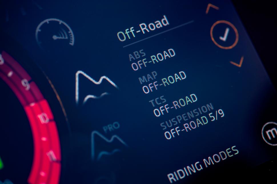 Во Внедорожном режиме задний контур ABS отключается, а передний допускает большее проскальзывание колеса. Внедорожный трекшн-контроль подстраховывает при слишком рьяной работе газом. Подвески в любом режиме можно настроить под себя, но опять же, в среднем темпе стоковое пятое положение из девяти на шкале жёсткости оказалось оптимальным для тех, кто собрался путешествовать, а не сломать что-нибудь на тяжёлом мотоцикле, прущем напролом по бездорожью.