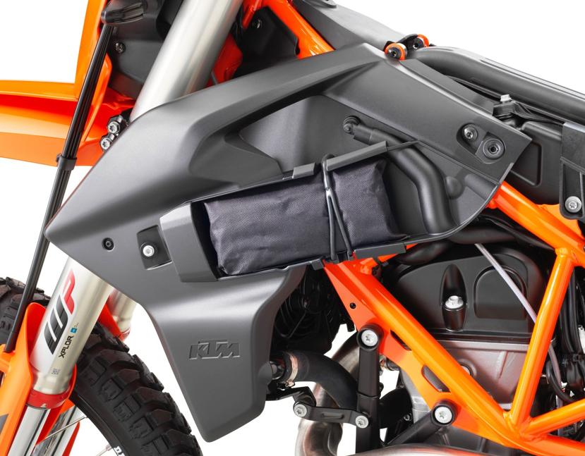 Во время езды по шоссе мотоцикл своей плавной работой больше похож на двухцилиндровый байк, чем на одноцилиндровый – вибраций почти нет. Еще одной особенностью новой модели является механизм полуавтомата КПП, который позволяет плавно переключать передачи без использования сцепления. Электроника KTM имеет два уровня контроля тяги - для бездорожья и для дорог с хорошим покрытием. ABS корректирует свою работу в зависимости от угла наклона мотоцикла, а пультом на левой стороне руля можно выбрать одну из двух карт режимов работы двигателя.