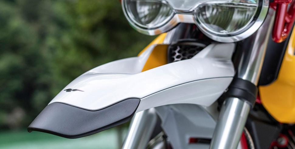 Несмотря на то, что это большой V-twin воздушного охлаждения с продольным коленвалом, он почти соответствует эконормам Euro5, для полного соответствия потребуется пара незначительных изменений. Двигатель является нагруженной конструкцией шасси мотоцикла, для чего была увеличена прочность картера. Коробка передач была доработана для более гладкой езды, доработки включают в себя синхронизатор, который предотвращает удары при включении первой передачи. Мотоцикл имеет карданный привод, который на 70 мм длиннее, чем у V7
